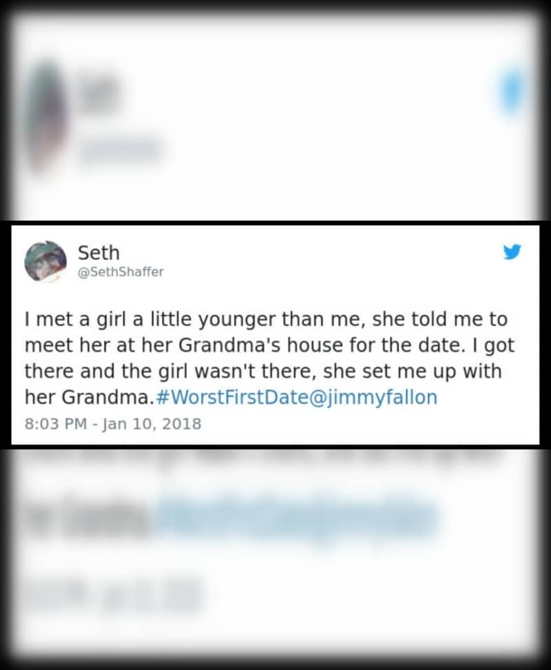When Seth went to have his first date with that girl, she wasn’t there, turns out she set him up with her lonely grandma. We have to admit this is one of the more bizarre first date interactions we have read so far. Run if the date venue is grandma’s house.